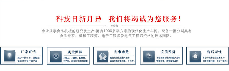 广东丰会行智能装备有限公司,广州永丰厨具设 备 于 1997年 厂办 , 专业从事食品机械的研究及生产。本厂拥有1000多平方米的现代化 生产车间,配备一批分别具有食品专家,机械工程师,电子工程师 质的产品生产及售后服务的专业队伍,从而为客户服务提供优质的 及电气...